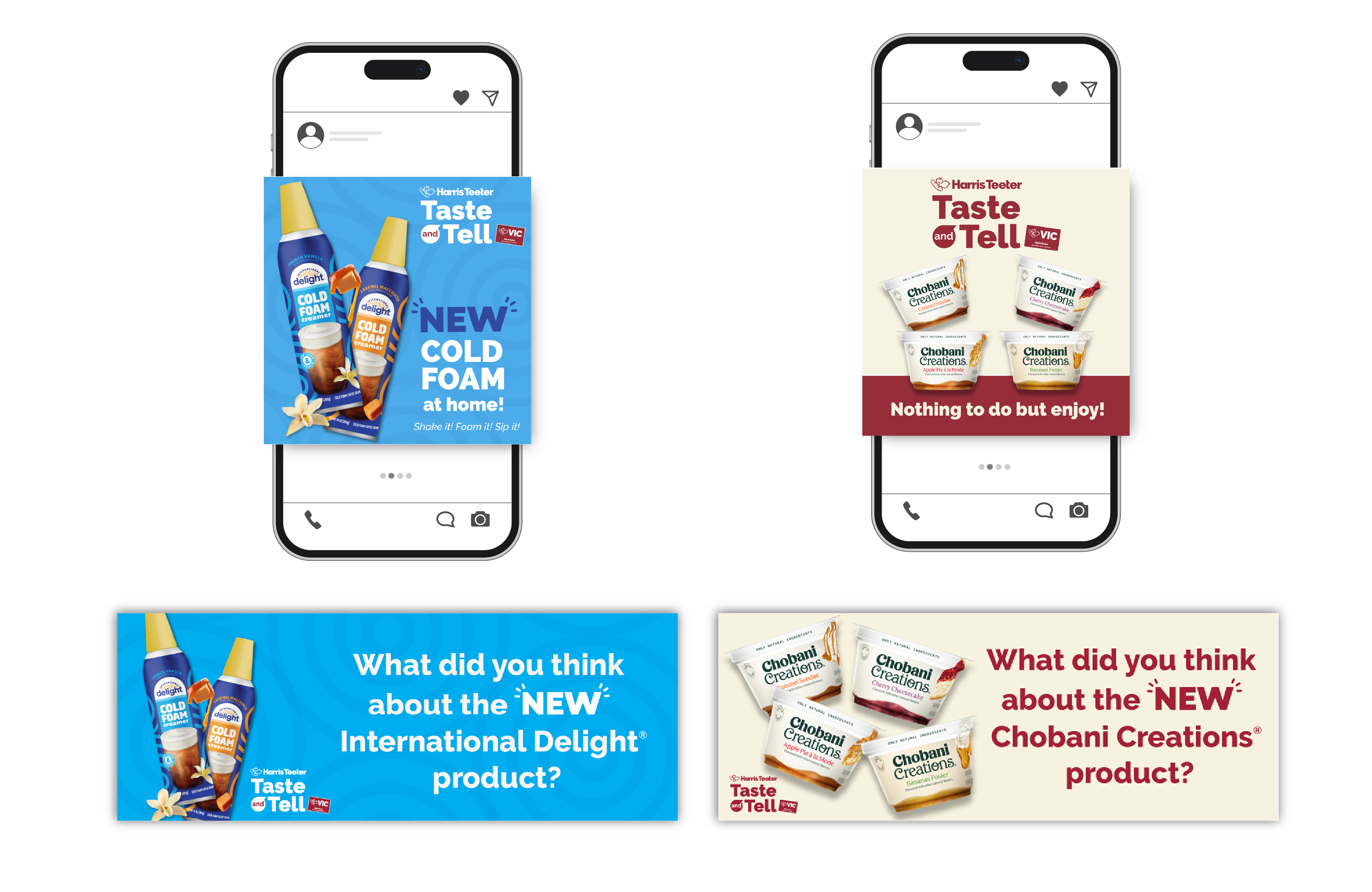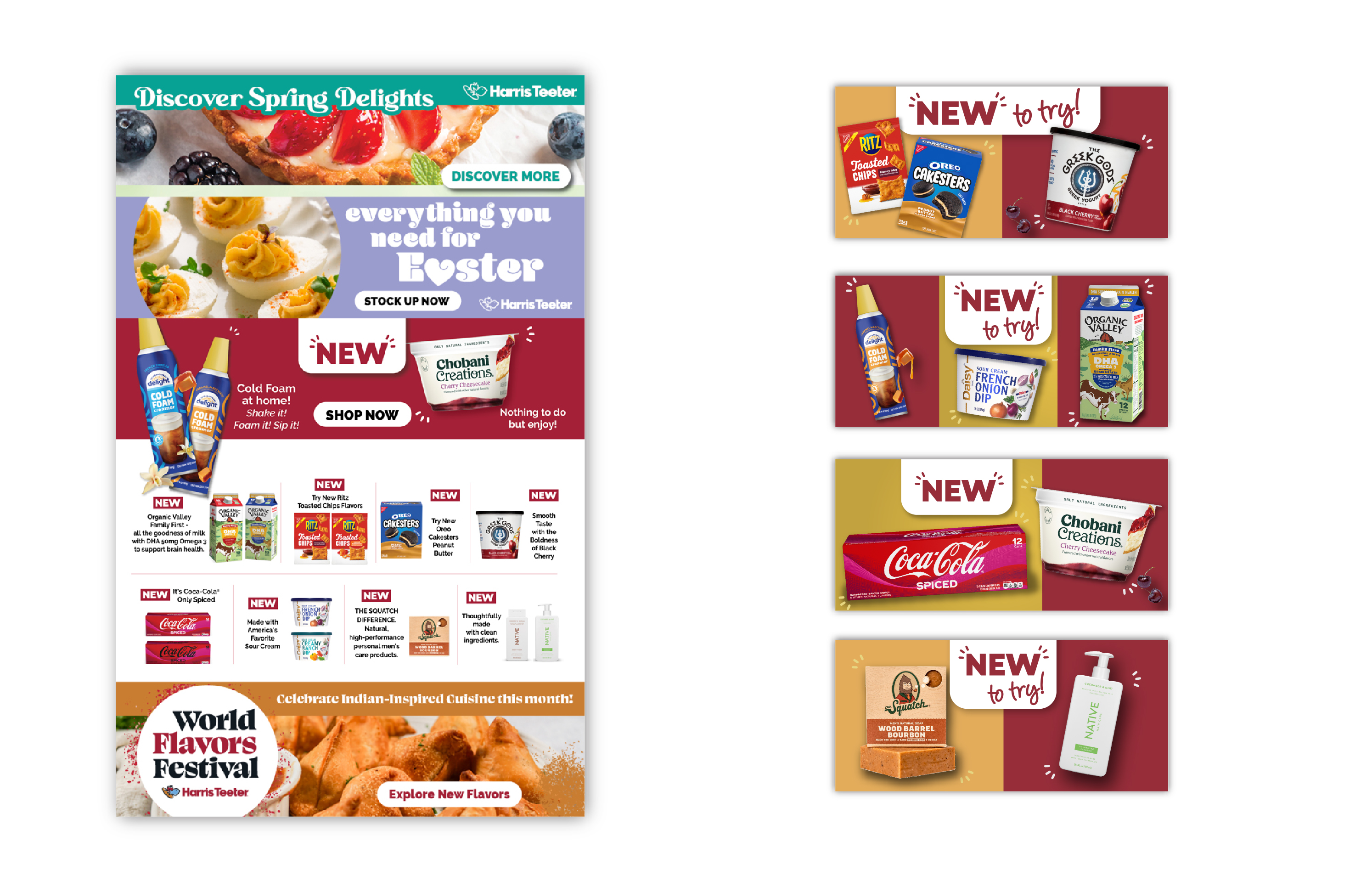 Harris Teeter’s Shopper Marketing team, which works with vendors, tasked me with creating assets for New Item Discovery every month. I was given new items that were coming in the store, and I created social media graphics, email, and web banners. Also, along with these assets, I created digital pieces for our Taste and Tell program. For this program, Harris Teeter would give out 2,000 free items for our VIC customers if they signed up.